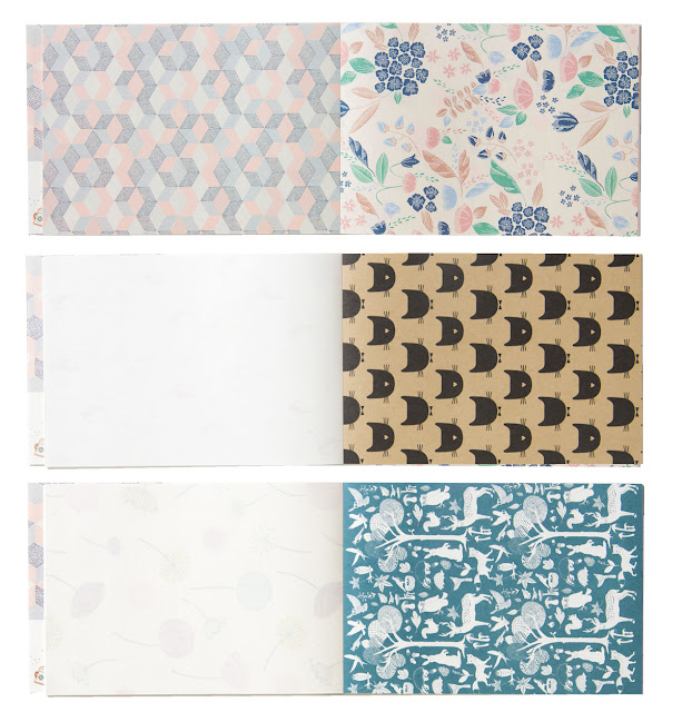 Il est composé de 100 feuilles avec 4 différents papiers, rugueux, lisses, kraft... avec 50 modèles d'illustrations différentes se répétant deux fois.